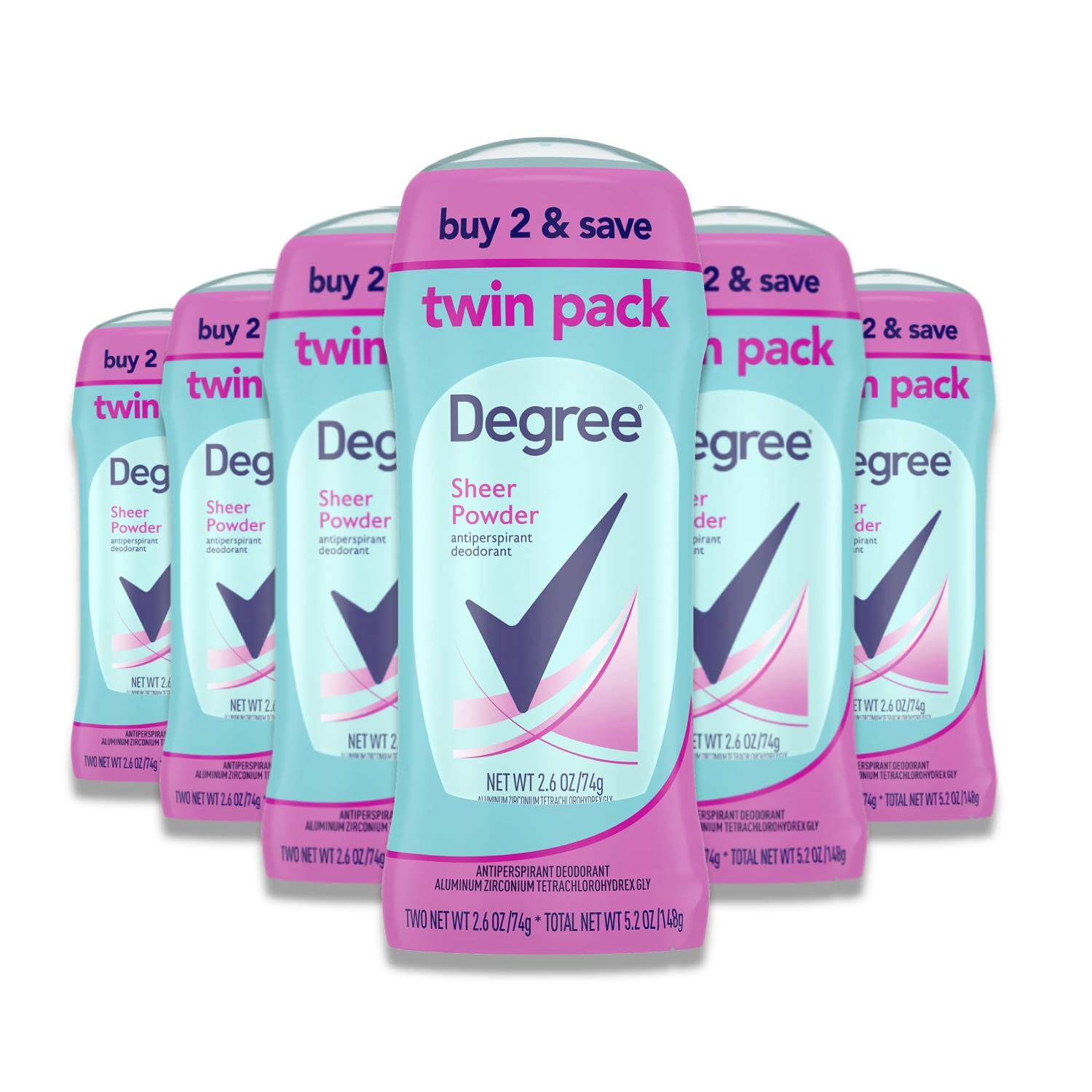 Degree - Original Antiperspirant Deodorant, Sheer Powder, for Women - 2.6 Oz - 6 Pack (Twin Pack)
