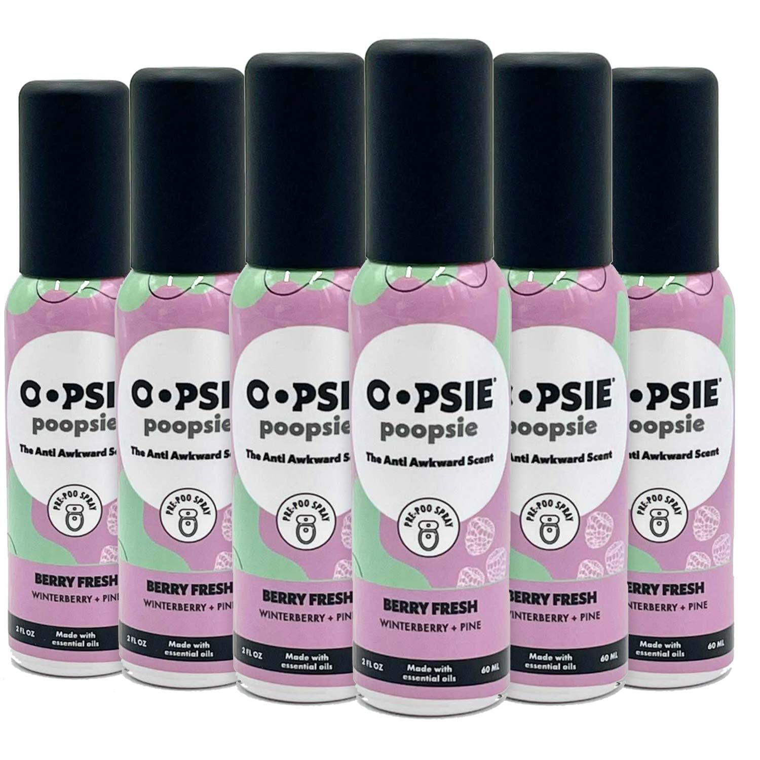 Never be ashamed of your poop smell again! Use Oopsie Poopsie, your personal pre-poo toilet odor eliminator! With a simple before-you-go spray design, Oopsie Poopsie will keep bathrooms everywhere smelling fresh. Unlike air fresheners and other sprays, Oopsie Poopsie doesn't just mask foul smells, it sprays an essential-oil layer in toilets that blocks and prevents odors from happening in the first place. Don't get caught pooping in a public restroom without these conveniently travel sized fresheners. Each bottle contains 2 FL oz/60 ml, perfect for when you need to go on the go. Be Nice? Spray Twice! Simply shake well then spray twice (or as desired) directly into the toilet before releasing. Inspired by nature, 100% essential oil-based product.