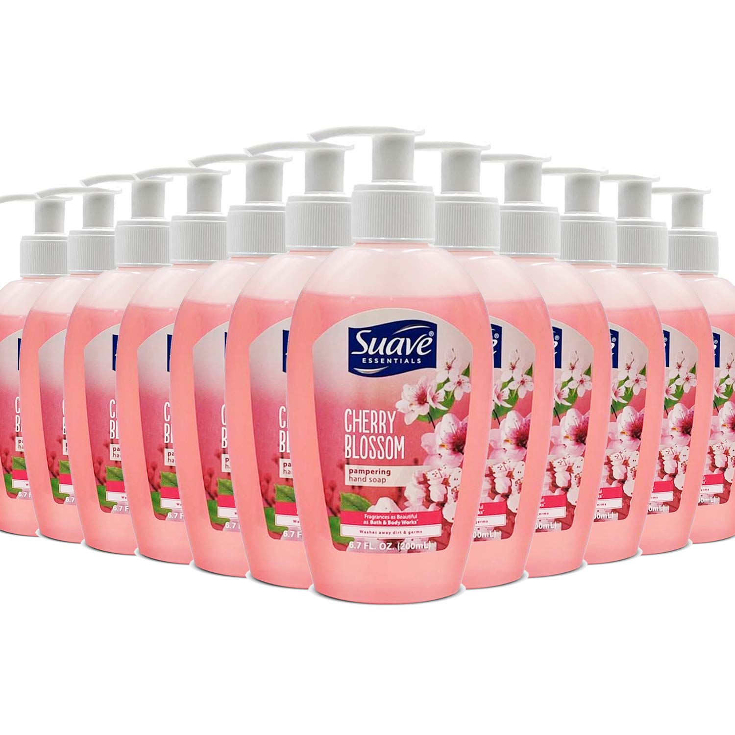 Suave Essentials Cherry Blossom Refreshing Liquid Hand Soap with aloe, washes away dirt and germs This hand soap has an uplifting scent that is a playful blend of watery hyacinth and fresh sandalwood, this hand wash will leave you feeling fresh and revived This hand soap won’t leave hands feeling dry This exquisite scent was developed by world renowned fragrance experts This hand soap is available in a convenient, easy to use, recyclable bottle All Suave products are PETA-certified Cruelty Free